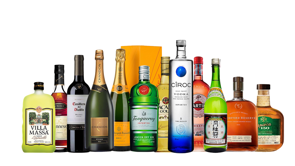 incluindo cervejas, vinhos, destilados,